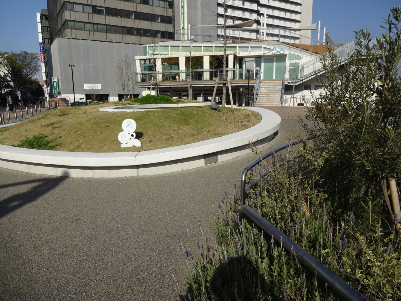 水辺の公園にはクルーズ船の乗り場があり、樹木が植えられ、花もきれいに咲いていました。