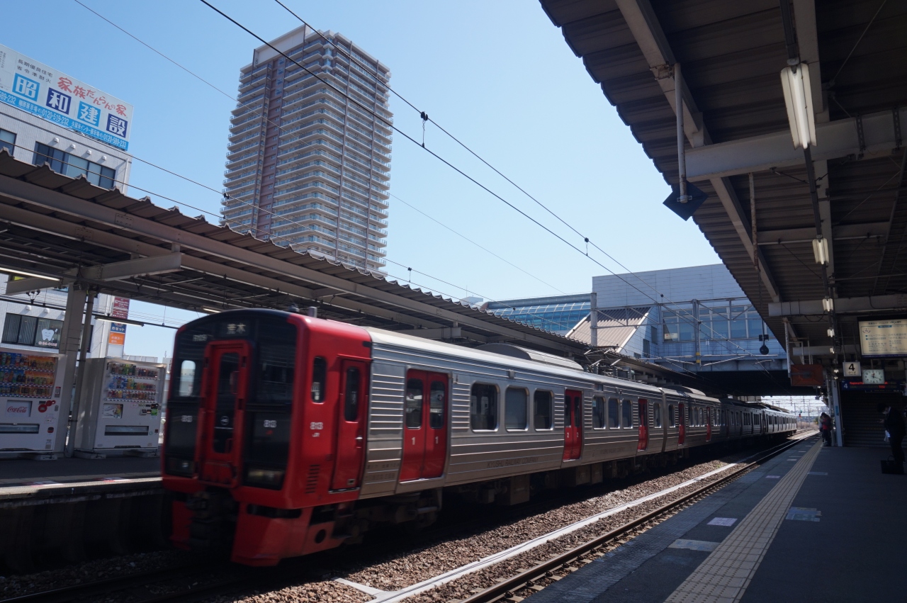 博多駅周辺は、成長を続ける福岡都市圏の重要な足です。福間~博多~二日市間では、昼間でも1時間に快速3本、普通3本が走り、旺盛な需要を支えています。この区間ならば、時刻表を見ずとも大きなタイムロスなく動けると思います。