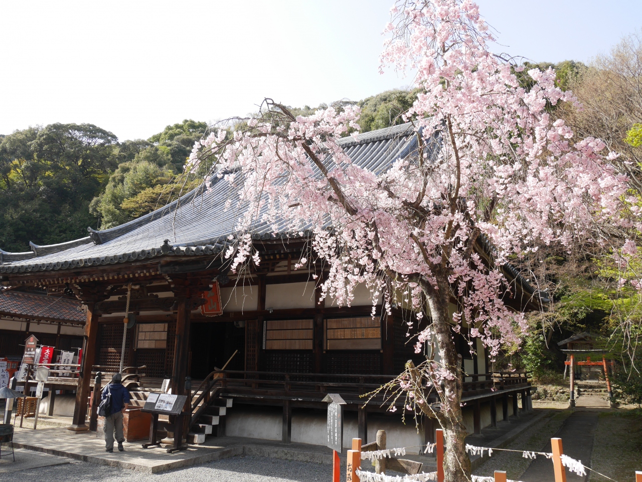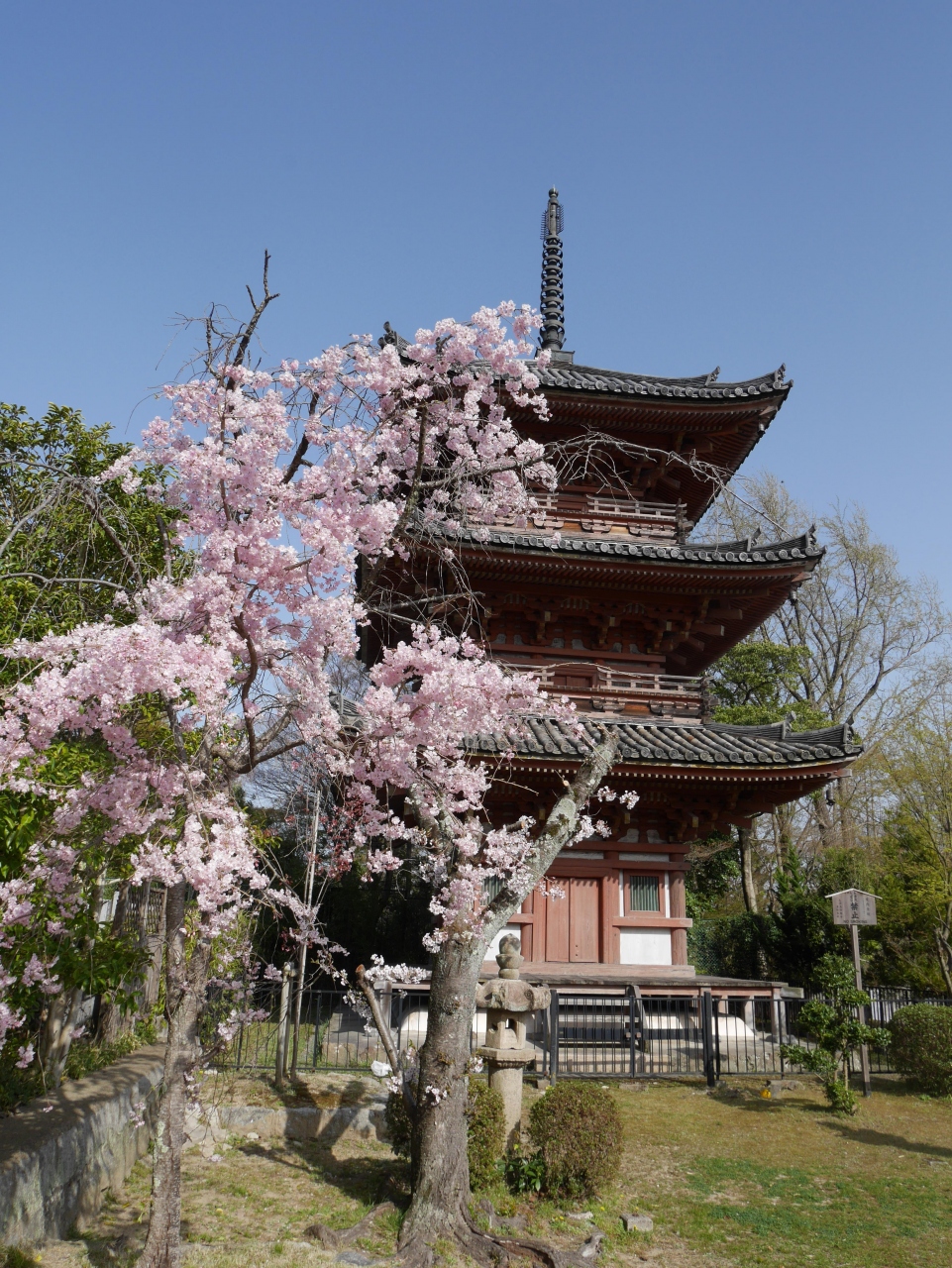 JR山崎駅から1キロ足らずのところにありますが、かなり坂から急です。仁王門を過ぎると、山崎の戦いに勝利した豊臣秀吉が一夜で建てたと伝えられる立派な三重塔があります。正面には本堂があり、その前には秀吉が腰を掛けたといわれる出世石があります。ちょうど桜が満開で非常に綺麗でした。また、ここから天王山の登山口となっており、時間のある方は登ってみてはいかがでしょうか。