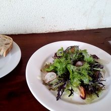 サラダは何の変哲もない、普通のグリーンサラダ。