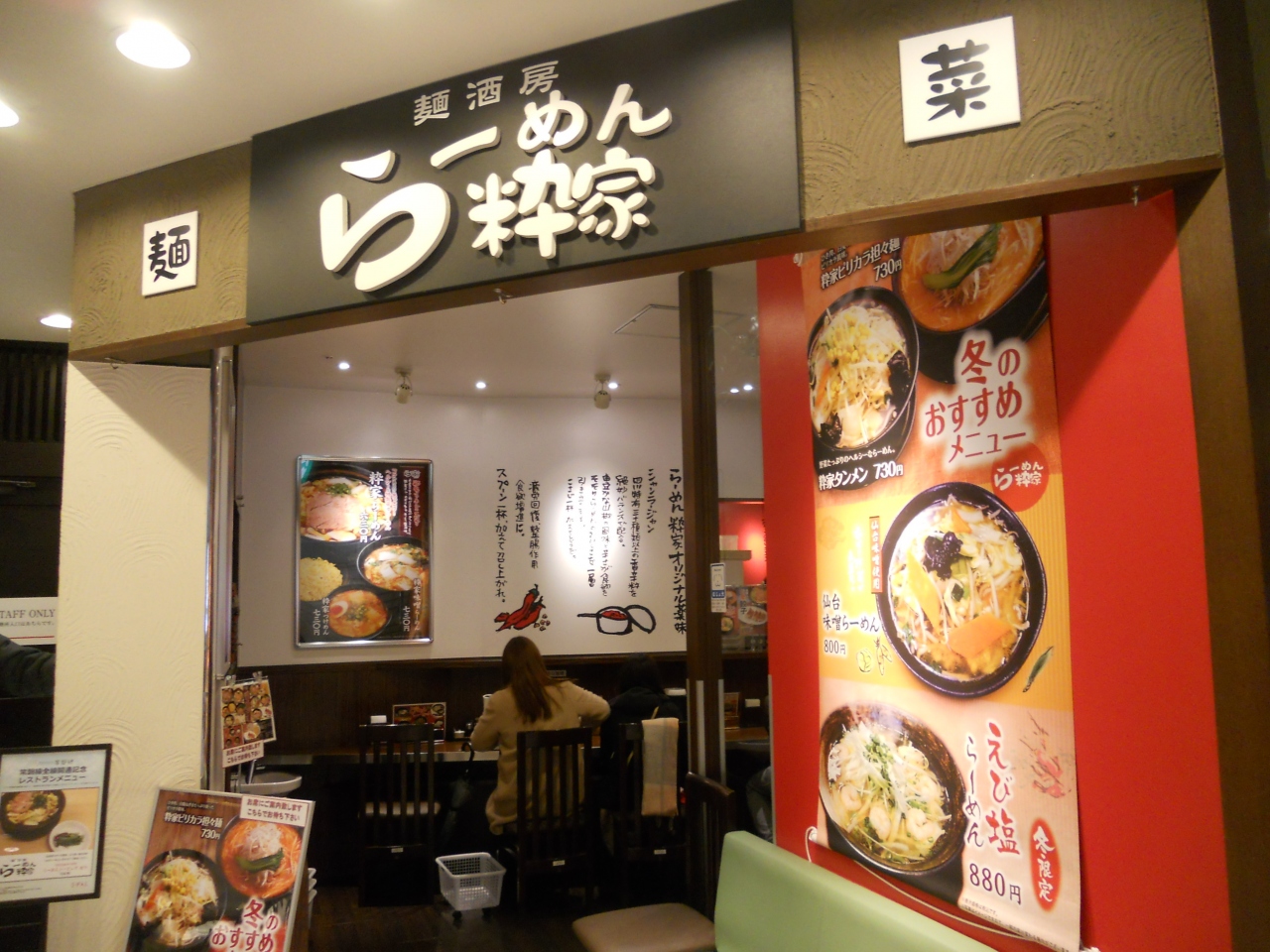 仙台駅の駅ビル「エスパル」の本館の地下(つまり仙台駅の地下)に入っている「ラーメン粋家」さんで夕方ラーメンをいただきました。