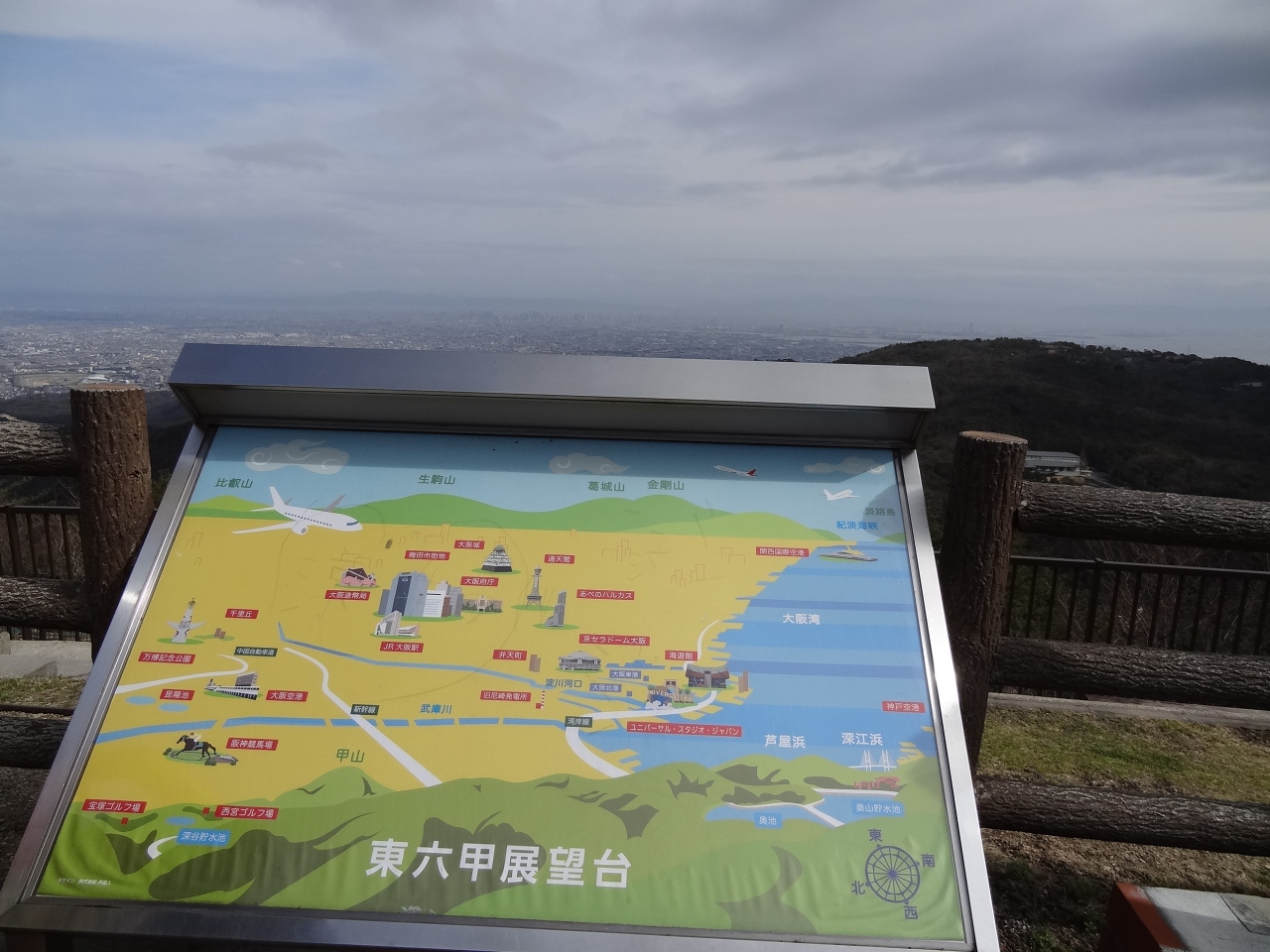 有馬温泉から芦有ドライブウェイ(有料)に入り、20分ほどでこの展望台に着けます。道路沿いにある展望台で、30台ほど無料で駐車できます。有料の双眼鏡も常備されていて、飲食ができるお店もあります。この日は午後でも風が強くて少し寒かったですが、それでも7・8名の観光客がいて、景色を堪能していました。180度まで広がる展望台では、大阪と大阪湾を一望できます。特に、大阪空港から飛び立つ旅客機が見えるのがいいです。もちろん、右手奥には関西空港も霞んではいましたが、双眼鏡で見ると空港までの橋や空港全体を見られます。昼間でも素晴らしい景色が見えますが、夜になればきっと夜景はもっとファンタスチックになるでしょう。