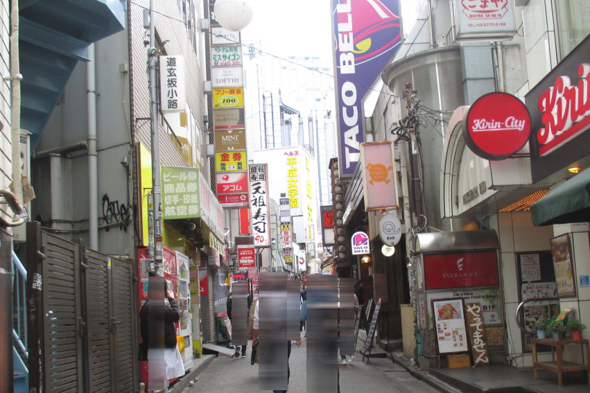 SHIBUYA109の少し奥(西方)のところで、南北に通じている小路で、道玄坂と文化村通りを結んでいます。小路の名前の通り、両側に飲食店が並ぶ、幅のない道路です。昼間に通りましたので、いかがわしさはあまり感じませんでしたが、きっと夜になると、大人の遊び場的に変身すると思います。