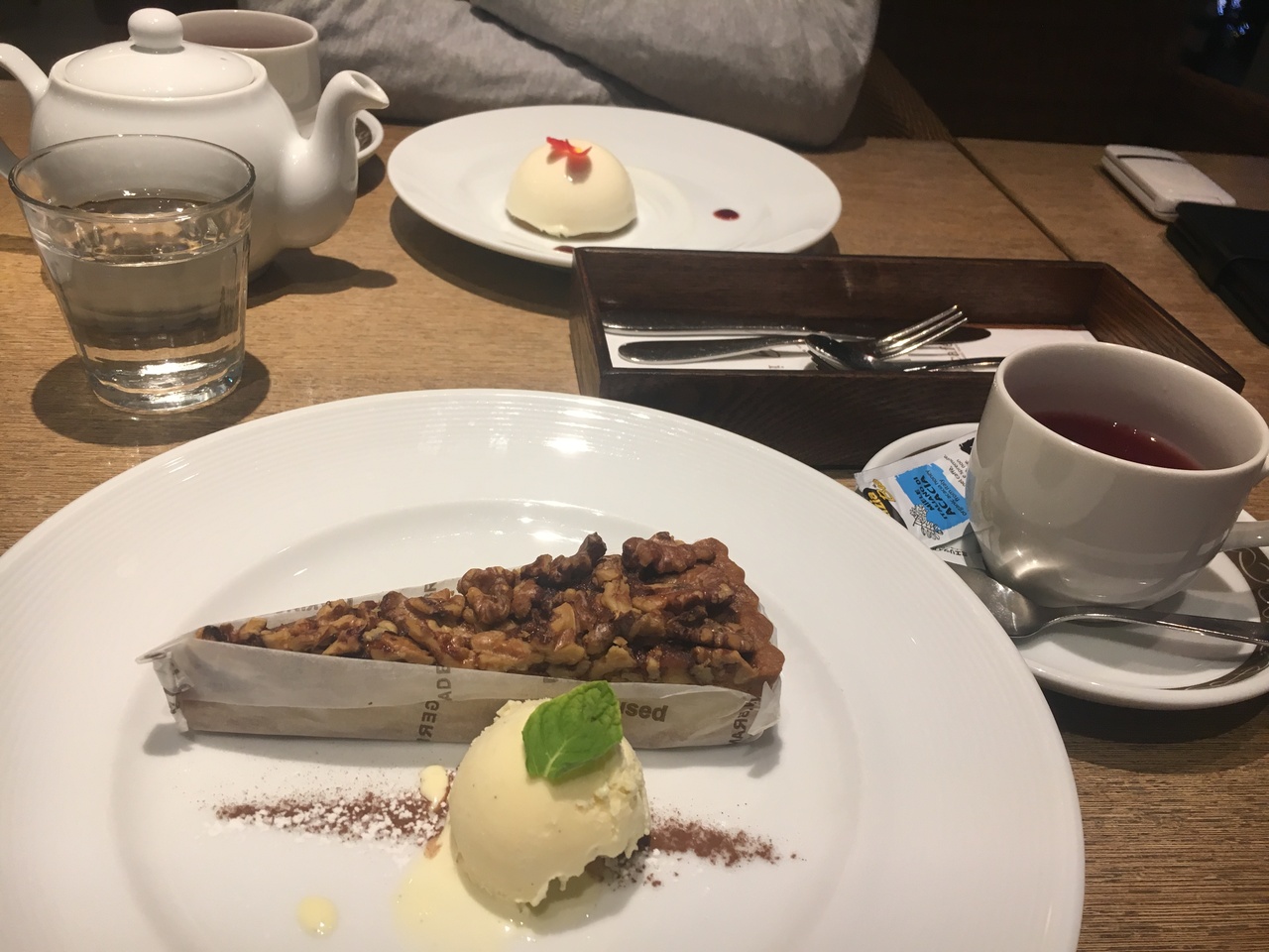 雰囲気◎味◎それゆえお値段高めのケーキセットで1500円。ナッツ×蜂蜜のタルトとフルーツティー美味しかったです。