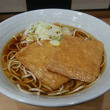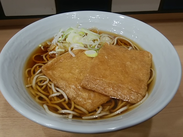 食券を出すと、あっという間に登場。色濃く味付けられたきつねが2枚。見た目とおりに、しっかりと甘い油揚げ。おそばは、ぶわぶわ。今まで食べた立ち食いそばの中で、きっと一番ぶわぶわ。
