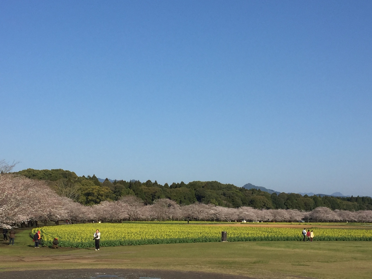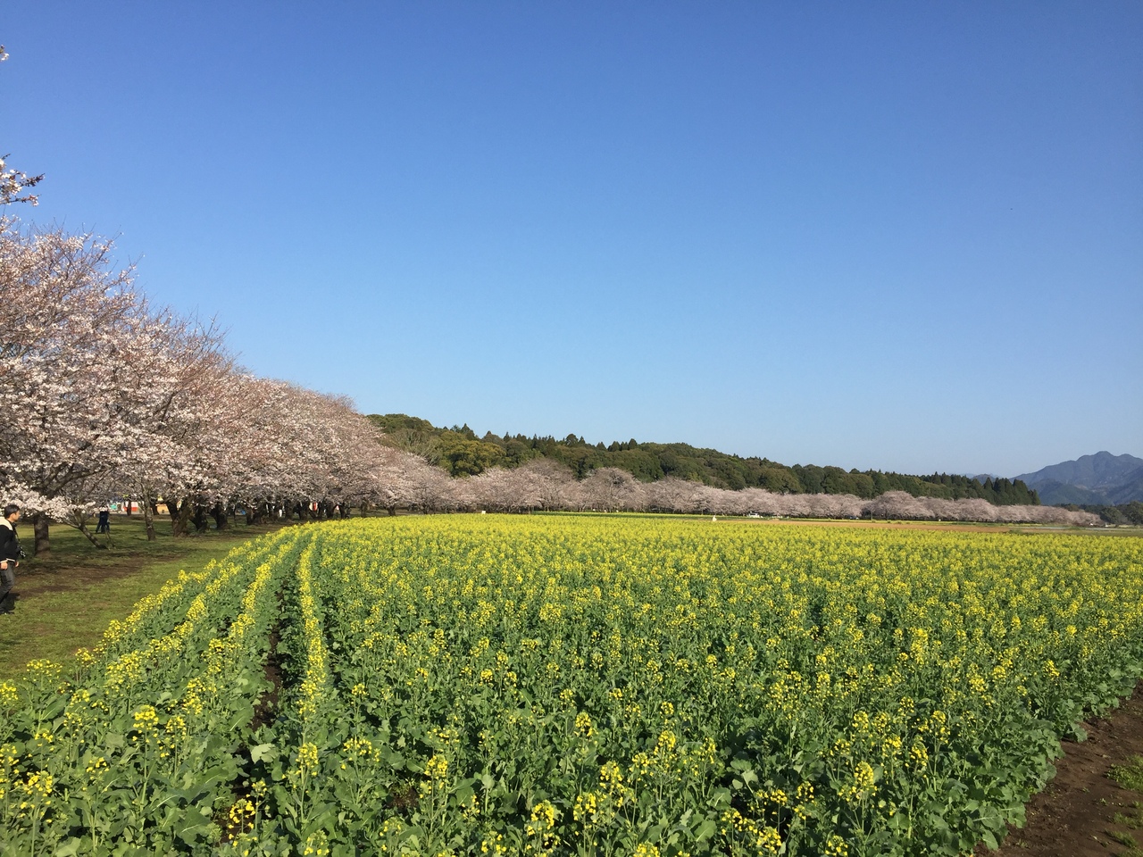 宮崎県に桜を見に行った際に西都原古墳群は桜と菜の花が同時に見れる花見の名所ということでここに来ました。日曜日の朝8時頃に到着しましたが、すでに一眼レフを持ったカメラマンが数十人いました。黄色の菜の花とピンクの桜が綺麗でした。