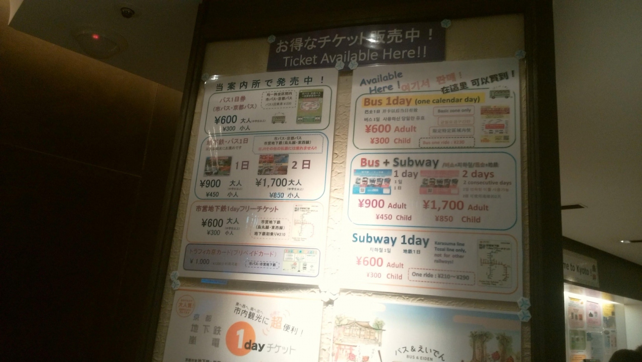 京都のバスや地下鉄の一日乗車券も売っているところです。