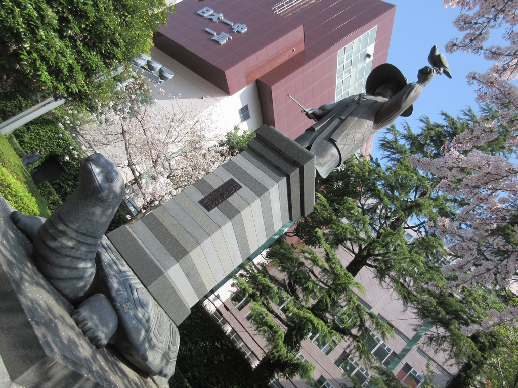 築いた人です。その銅像が、江戸東京博物館の近くの植え込みの