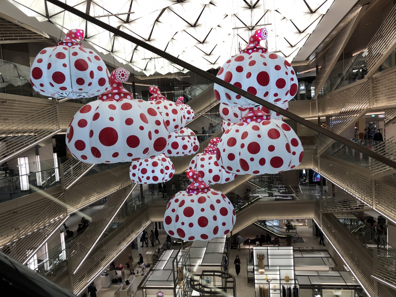 実際に行ってみると、新宿伊勢丹以来のワクワク感がありました。吹き抜けの草間かぼちゃはインパクトがあるし、中央のスペースには自信満々に展示された面白い品々がキラキラと並んでいました。