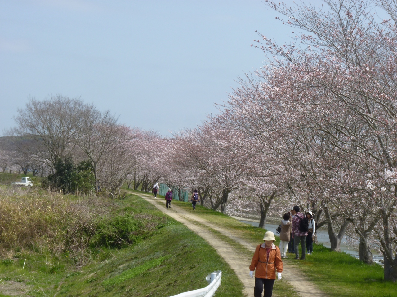 網引駅に下車後、万願寺川の土手沿いに沿って3月末から4月始め頃は約3キロメートル程桜並木が満開を迎え、ハイキングコースの一つになっている。途中稲荷神社を回り寺巡りをして約8キロほどの散策コースで春の田舎道と桜見物、寺等の史跡めぐりには良い時期のコースで再び網引駅に戻ってきます。