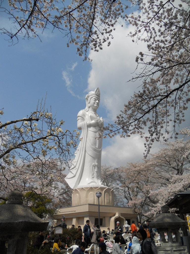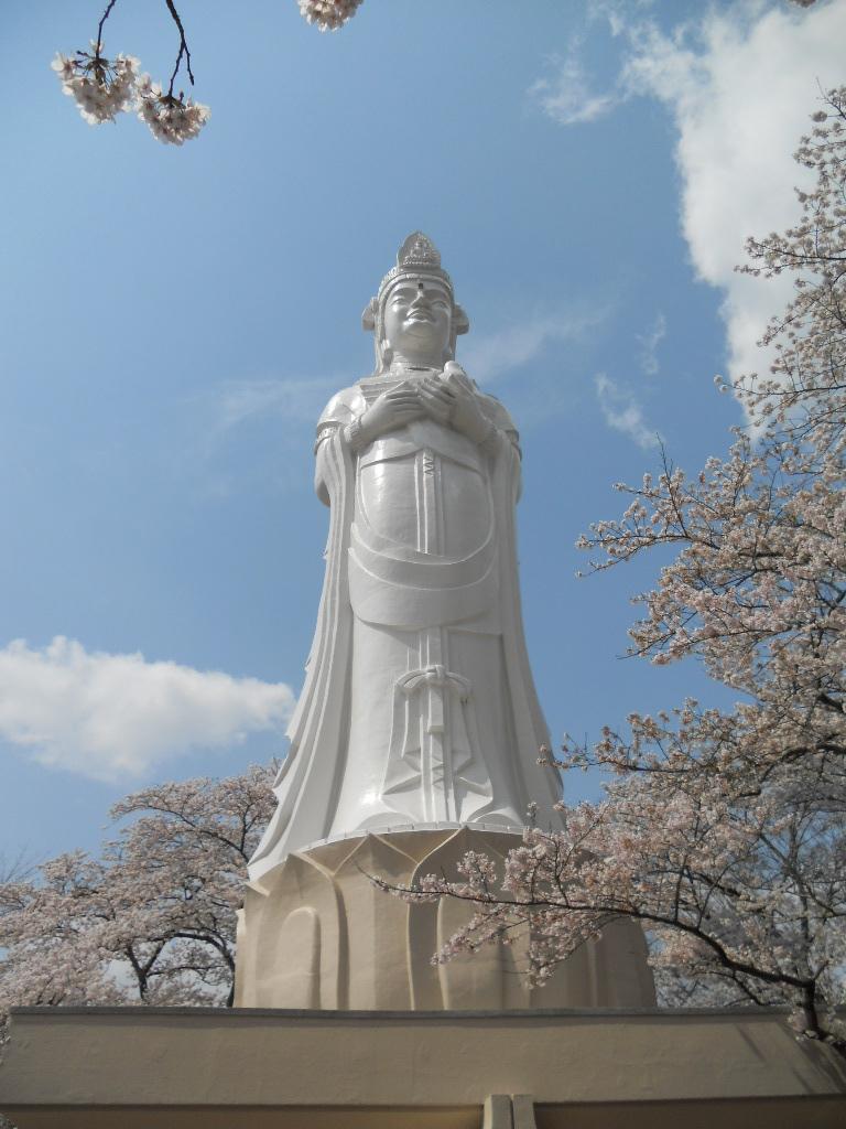 意外と小さくていらっしゃるのね・・という第一印象でしたが、真っ白で綺麗な観音様でした♪桜越しの観音様も美しい・・☆