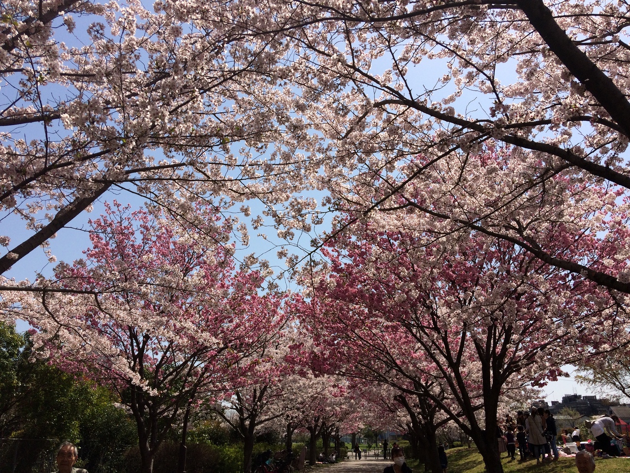 地元の人に案内され、桜の名所として連れられてきた船堀街道沿いにある公園です。綺麗な方形の形をしていない公園ですが、確かに公園の一角に満開のサクラが咲いている場所があり、ビニールシートを敷いて昼間から花見をするご家族がたくさんいましたね。そのほかの場所にも公園内のあちこちにサクラが植えられて咲き誇っていました。公園全体では江戸川区で盛んな野球場3面分がメーンで活用されているようで、そのほかはゲートボール場などがありました。