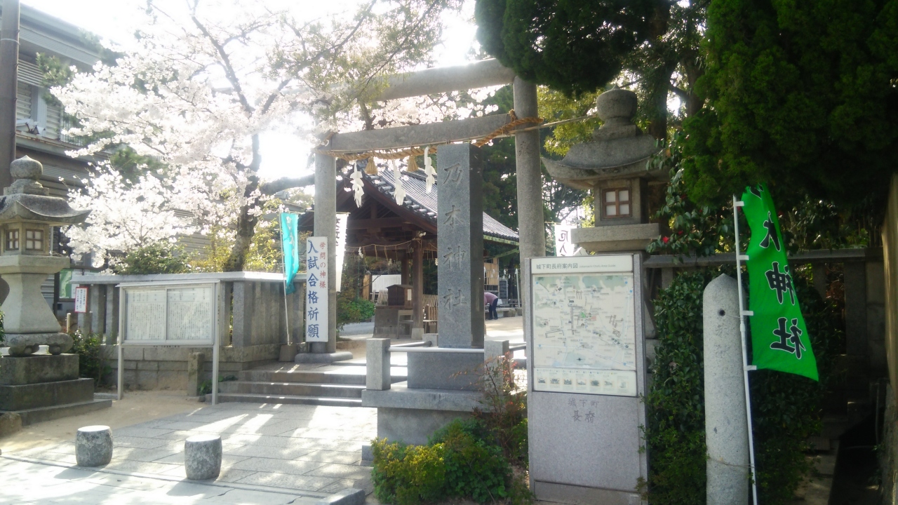 城下町の長府に、明治天皇の崩御にあたり、静子夫人と殉教した乃木大将をまつった神社がありました。乃木大将は教育熱心だったので、学問のご利益があるそうです。幼少を過ごした屋敷が再現され、宝物館もありました。御朱印をいただくことができました。