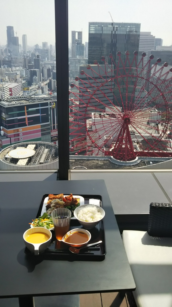 大阪梅田にある大阪工業大向の学生食堂です。一般にも開放しております。景色が抜んでしたね。料理はいろいろとあるビュッフェ形式で、お変わりはできませんがかなりたくさんもることができました。唐揚げがおいしかったです。