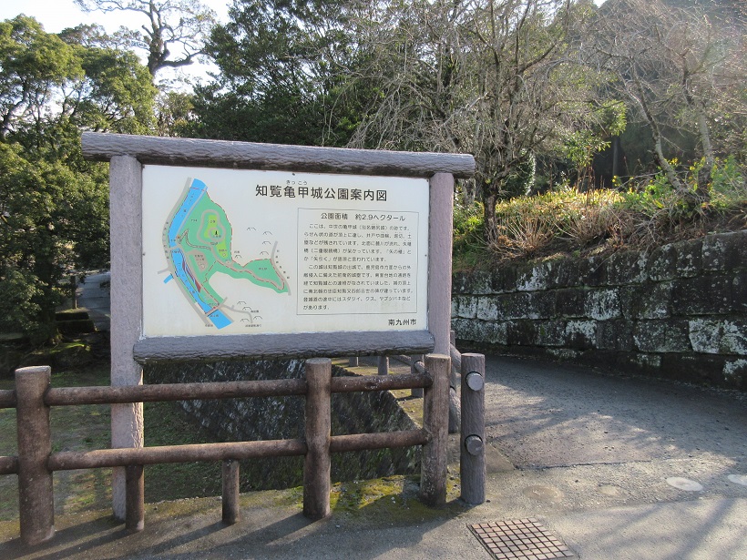 知覧武家屋敷の東側、丁度大通りから川を渡った先の左手の小高い山にある城跡です。知覧城の支城であったとされていて、ちょっとしたハイキングのつもりで細い道をすすむと土塁などがあって、想像力を掻き立てられました。川のせせらぎも気持ちよい城跡公園になっていました。