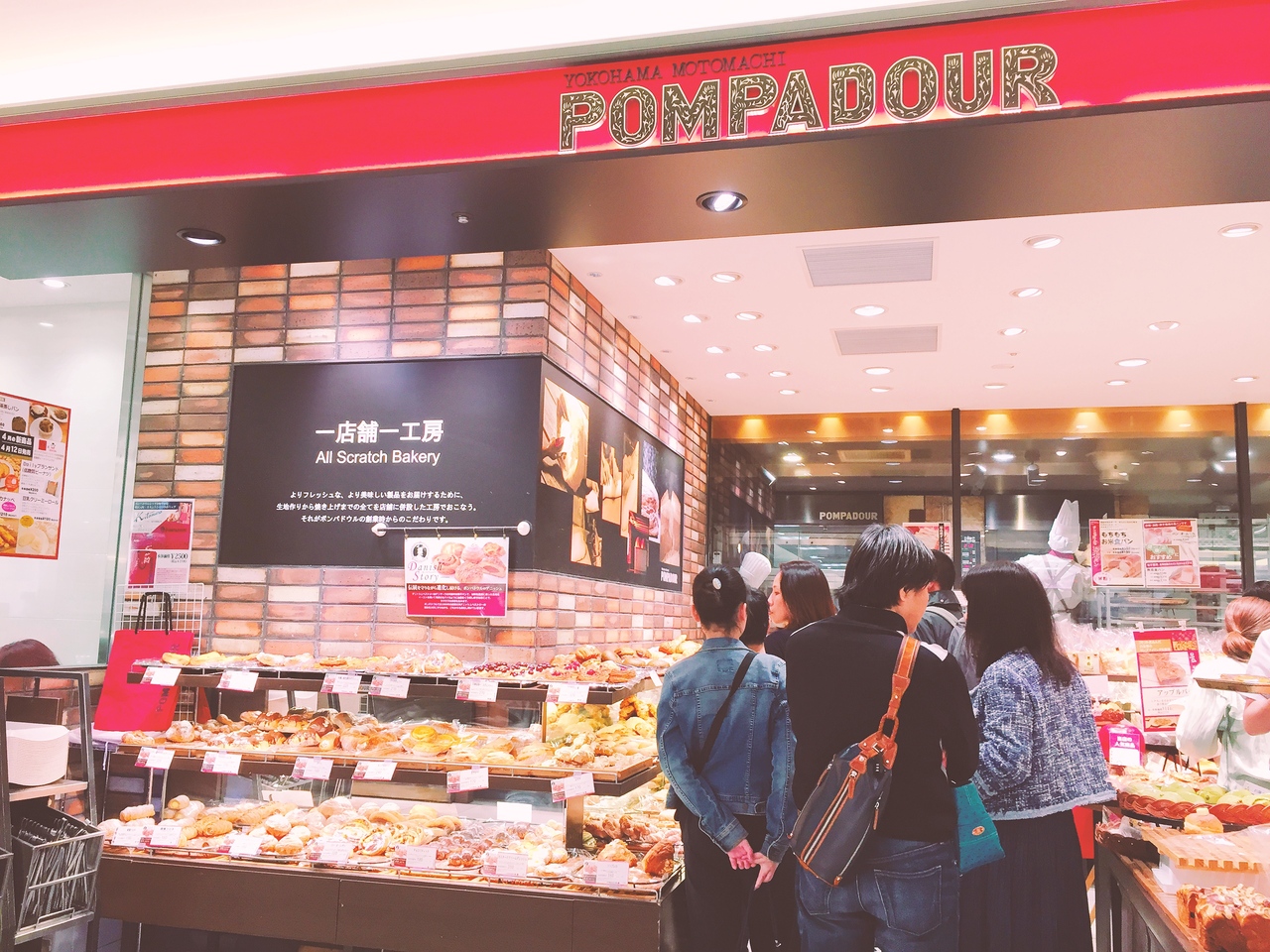 言わずと知れた、横浜元町から生まれたパン屋さん、ポンパドゥル。 赤い看板が目印です。 東京や神奈川だと結構、駅近の場所やデパ地下で見かけますが、関東を離れるとそこまであちこちに店舗を見かけないので(全国展開してますが)、関東に行った時は必ず立ち寄って、大好きなパンを買ってます。