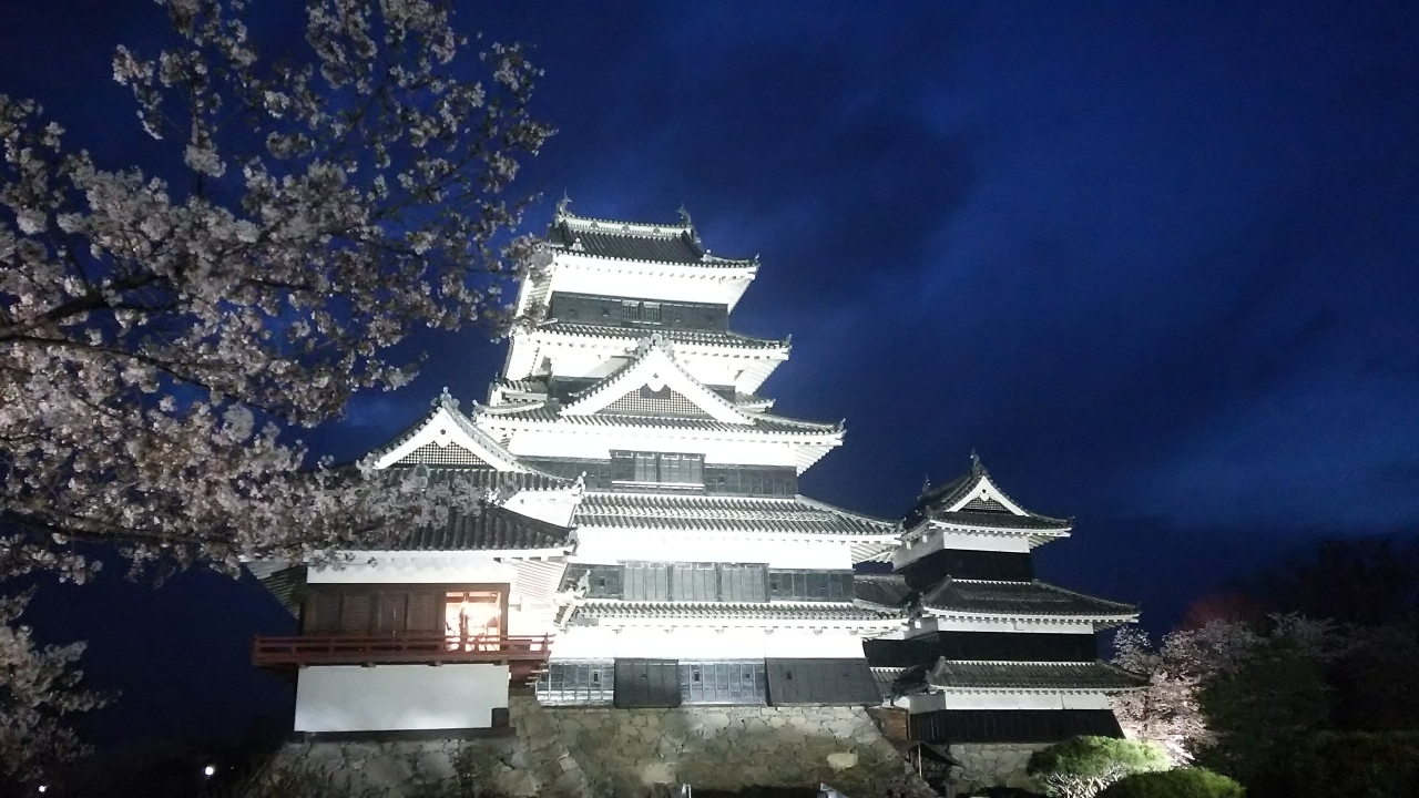 城内には桜は少ししかありませんが、演奏会が催されていたり、ライトアップされたお城が綺麗でした。