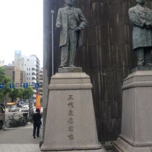 初代会頭の五代友厚、7代会頭の土居通夫、10代会頭の稲畑勝太郎の三氏が大阪商工会議所の前に建っています。