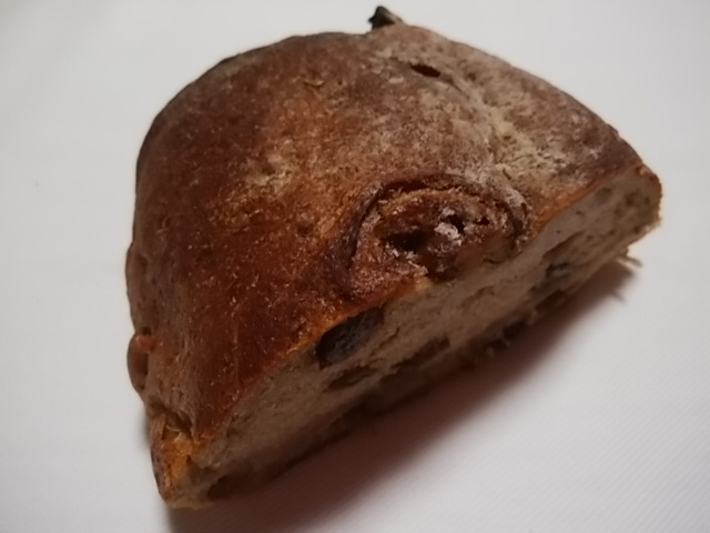 「くるみレーズン(ハーフ)」350円(税込)を購入。見た目ほどハードじゃなく、水分多めももっちりしっとり生地でとても美味しい食べやすいパン。