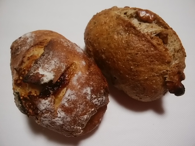 「フィグS」180円(税込)と「クルミパンS」180円(税込)です。例によってつぶれにくいハードなパンをチョイス。