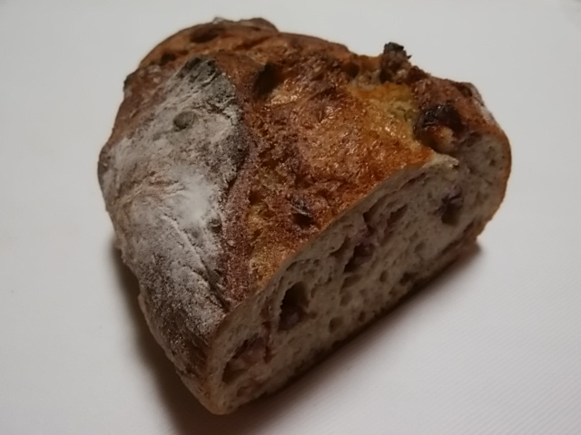 「クランベリーとくるみのパン(ハーフ)」380円(税込)です。もっちりした生地にたっぷり甘酸っぱいクランベリーが美味しいです。くるみは少なめ。