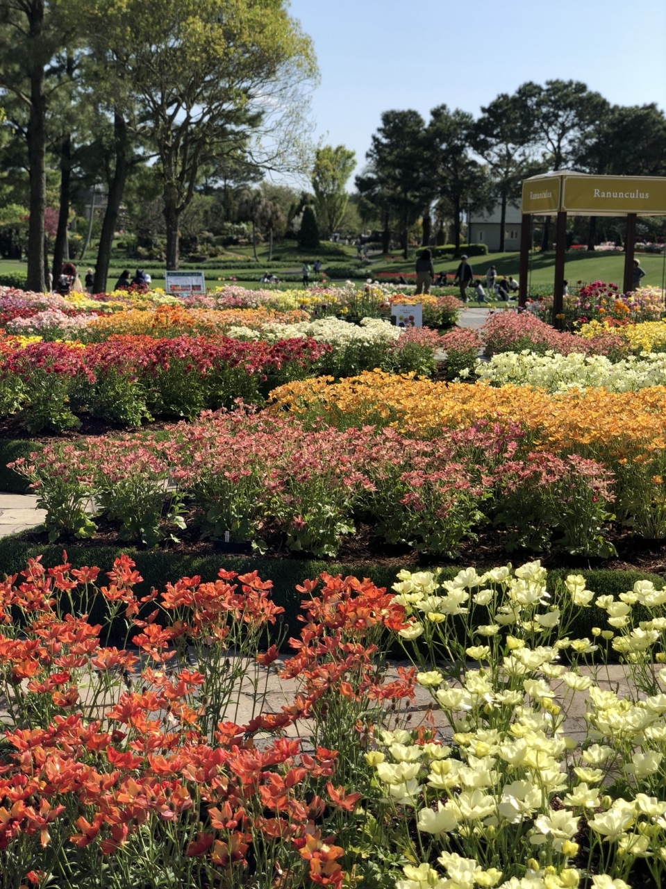 シーガイアの一角にあるお花がメインのセンターです。この日は春のお花であるチューリップが多く咲いていました。大きな芝生広場があり、木陰でミニテントを張ったり、敷物を引いてピクニックに来たり、子供連れにはオススメです。入場料も安い。