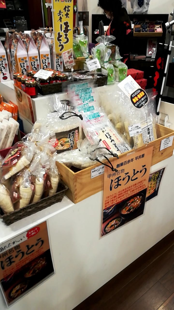 八重洲(日本橋)さくら通りの日本橋側、丸善ビルの隣のビルの1階にありました。その名の通り、山梨県のアンテナショップで、小さめの店内に所狭しと、甲州ワインやほうとうなどの同県の物産が販売されていました。