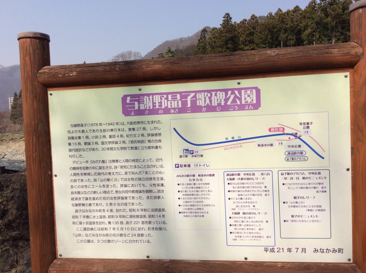 与謝野晶子の歌碑なども随所に見られ、彼女の残した俳句も飾ってありました。