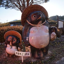 神戸からの帰ってくる途中でトイレ休憩に寄りました。滋賀と言えば信楽焼きのたぬきが有名ですが、このサービスエリアには親子で居ました。たぬきの足元あたりにサービスエリア名が書かれている看板があるので記念に1枚!