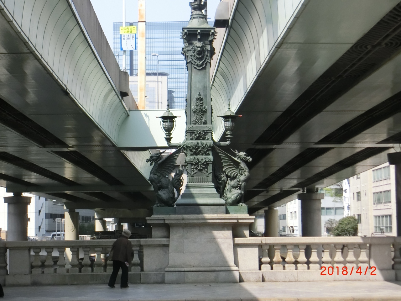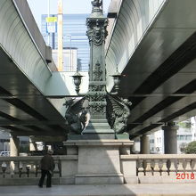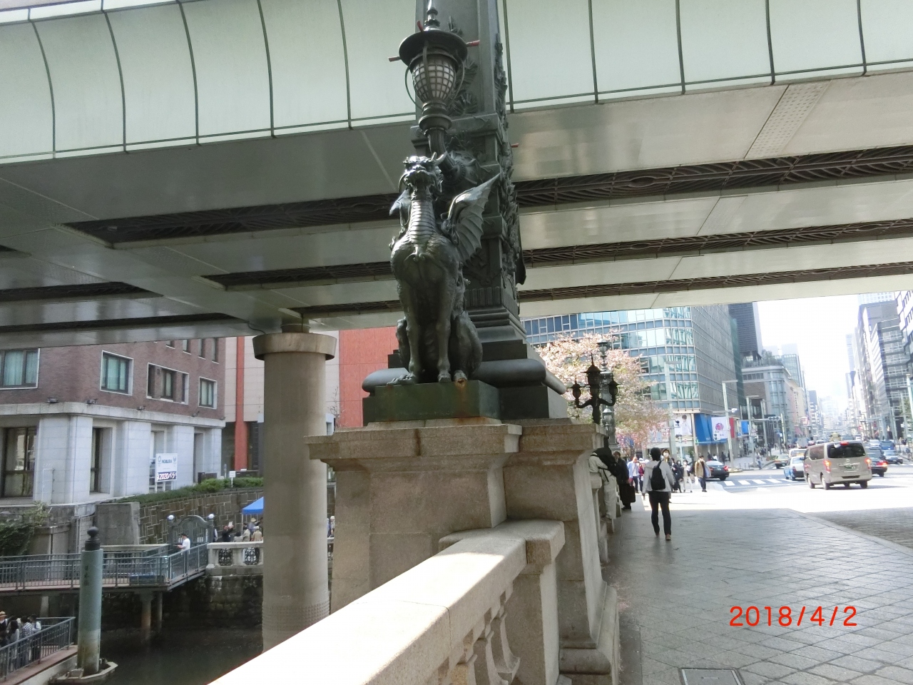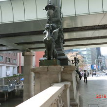 日本橋の欄干の麒麟像が2頭背中を向き合わせてあり、
