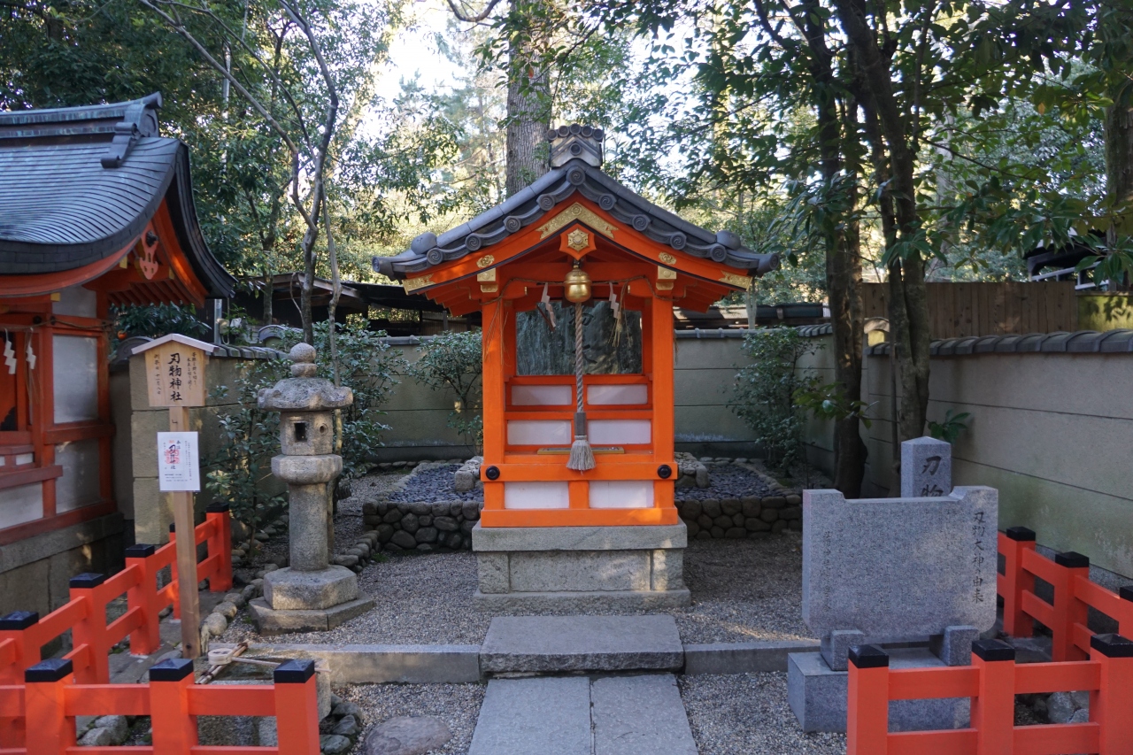 刃物社は、八坂神社の北側。本殿の裏手にあたる細い通路のような場所です。