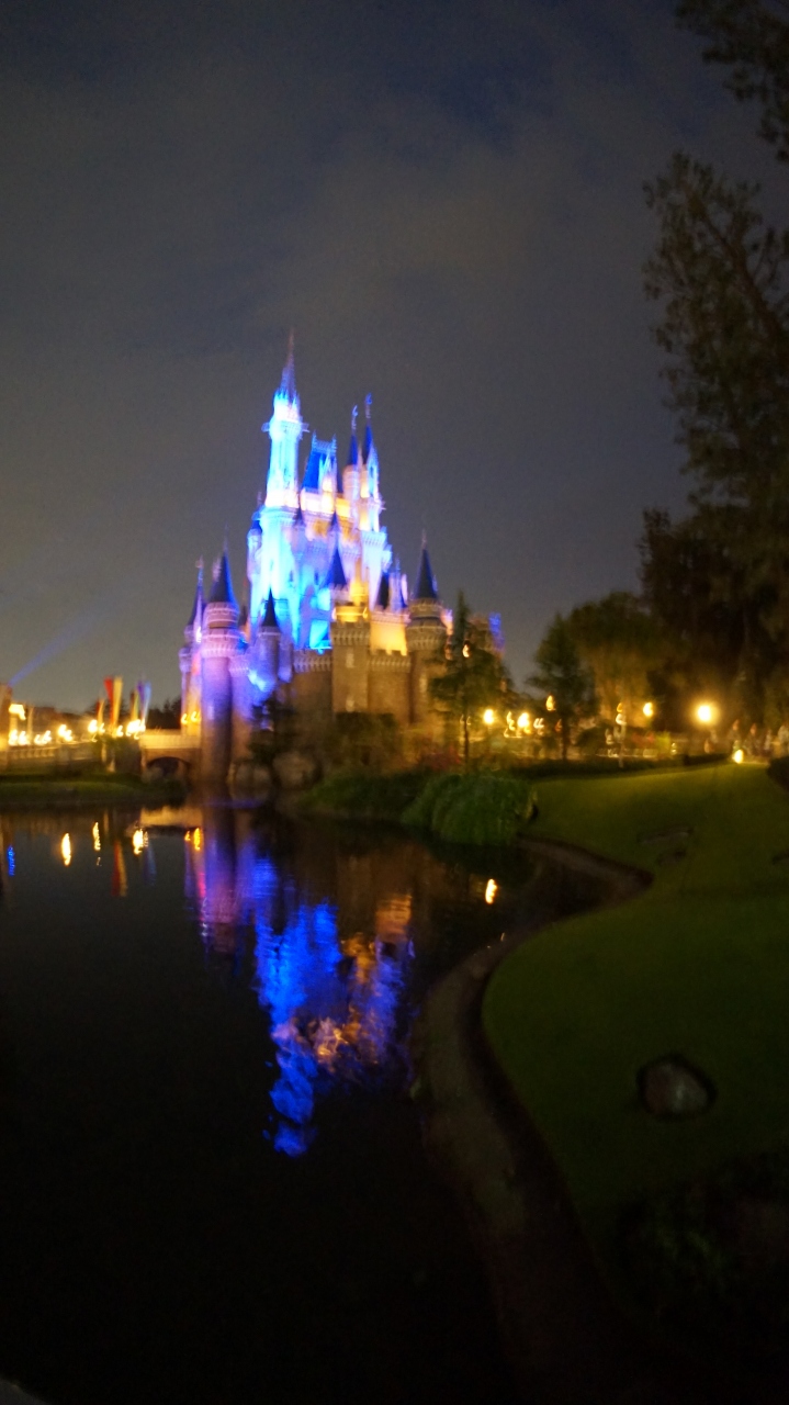 東京ディズニーランド、と聞いて真っ先に思い浮かべるのが、こちらの御城ではないでしょうか。お城の周りには池があります。夜景を撮るんだったら、この水面に映っているシンデレラ城も一枚は撮りたいものです。昼も夜もキレイ!