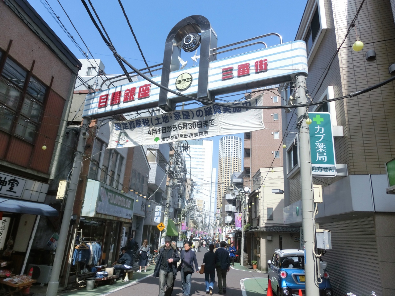 たまたま目黒川の花見で駅前や東横線の高架下は大混雑だったが、この商店街は人もまばら。