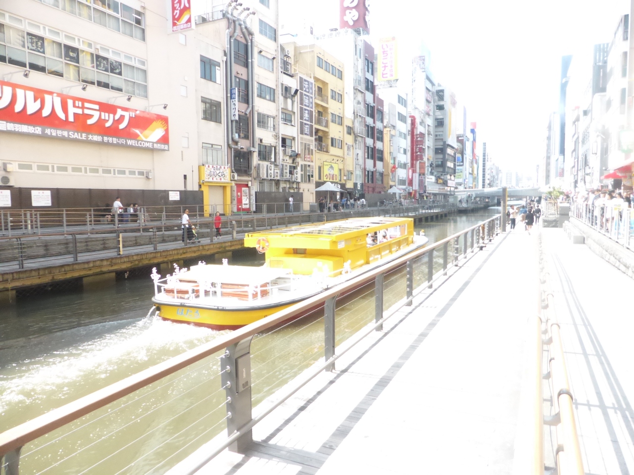 道頓堀川は相変わらず濁っていますが「とんぼりリバークルーズ」に「とんぼりリバーウォーク」という遊歩道はミナミの新しい観光名所です。