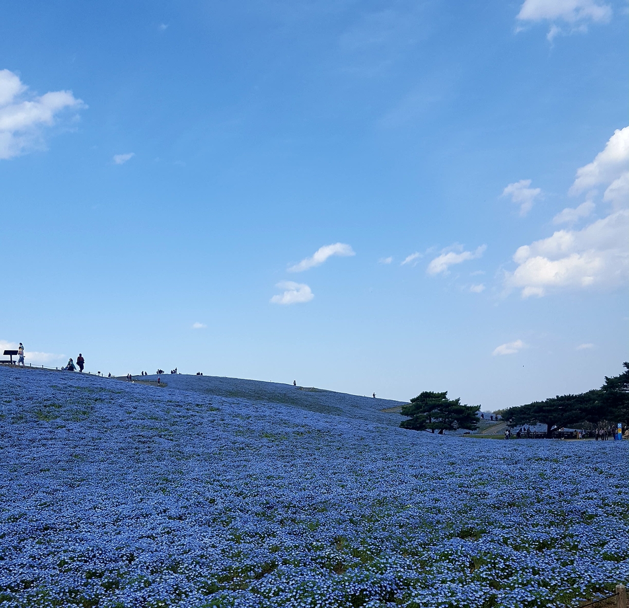 ネモフィラを見に行きました♪4月9日だったので混んでなくゆっくり見れました。まだ少し早くて7分咲きでしたがとてもキレイでした!!ワンコを連れてる人が多かったです。園内はとても広くかなり歩きました。歩くのがキツい人はレンタルサイクルや園内を走ってるバス?があります。屋台のハムやネモフィラソフトはおいしかったです。ちゃんとした食事は期待しない方が良いかも。またコキアの時期に行きたいと思います。
