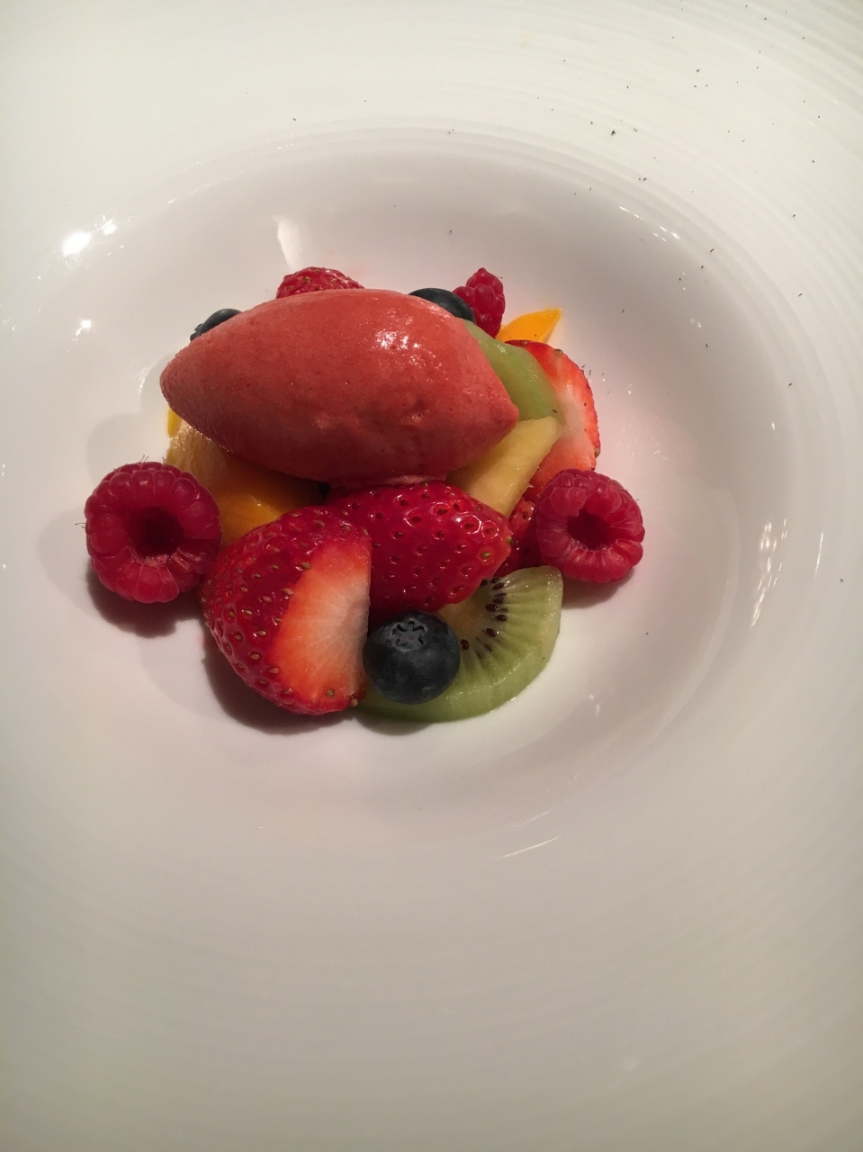 プリフィックスで前菜とスープから2品、メイン1品、デザートを選ぶのコースにしました。