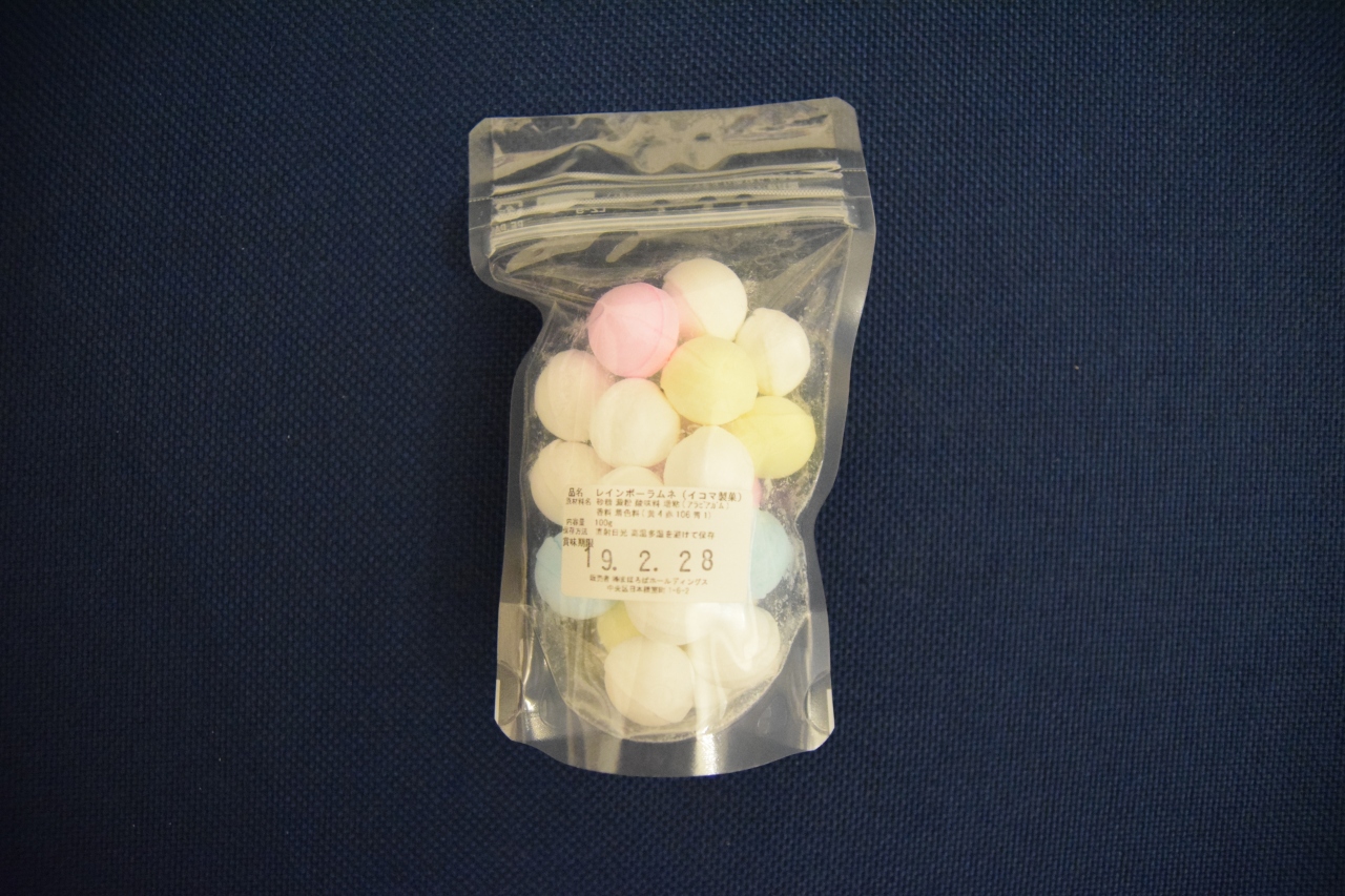 イコマ製菓のレインボーラムネが売られています。