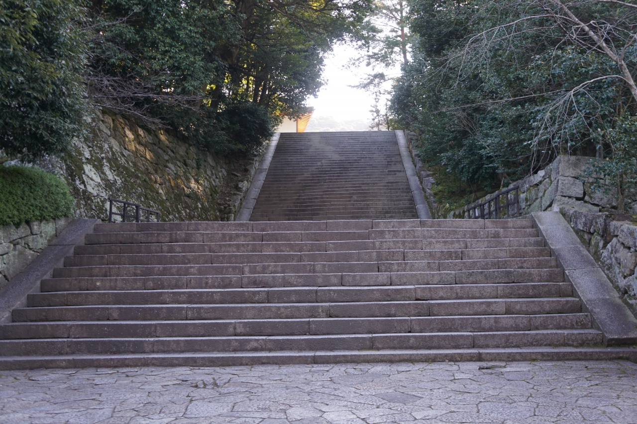 知恩院の男坂は、三門をくぐって正面。知恩院の本堂に向けて、まっすぐに上がって行く険しい石段です。この男坂と三門の組み合わせはとても迫力があって、ラストサムライのシーンの中でも印象的なカットとなりました。ちょっとしんどいですが、この坂から上る人がほとんどですので、がんばりましょう。