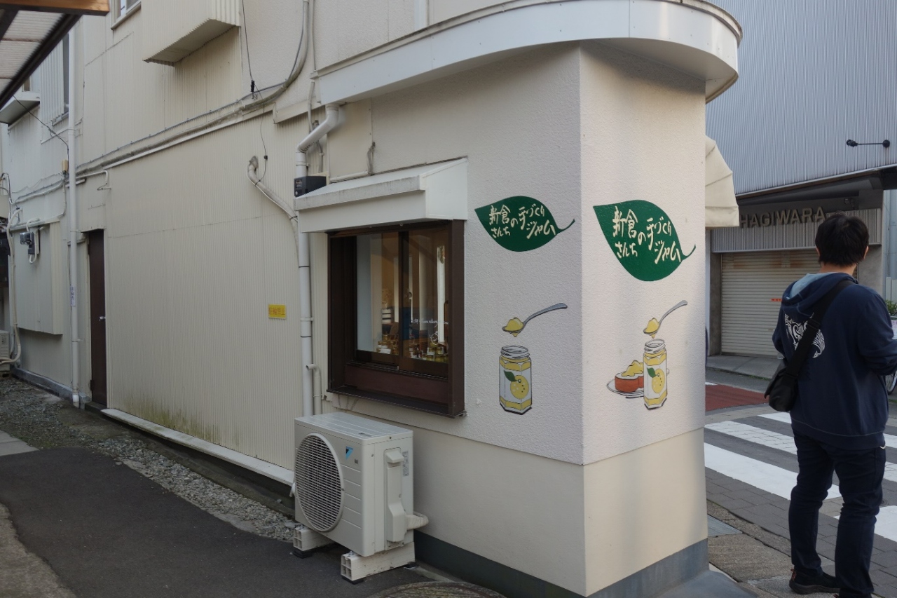 鎌倉駅にちかい御成通りを駅を背にして進み、交差点へ出たところの角…というより三角地帯のようになったところにあるジャム屋さんです。可愛い店内では多くの種類のジャムやマーマレードが棚に並べられていて、あまり見たことのない果物のものも有りました。