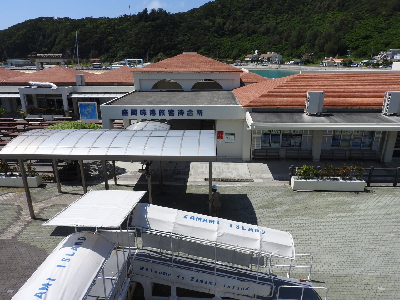 座間味ライナー,フェリー,島内航路とも同じ場所から発着します.ただし,ホエールウォッチングに行く船の乗場は反対側です.フェリーが接岸できるように岸壁は長くて深いです.フェリーのチケット売り場,観光案内所,売店,待合所などがあるため,多少時間があっても時間を潰せます.フェリーのチケットはクレジットカードでも購入できました.