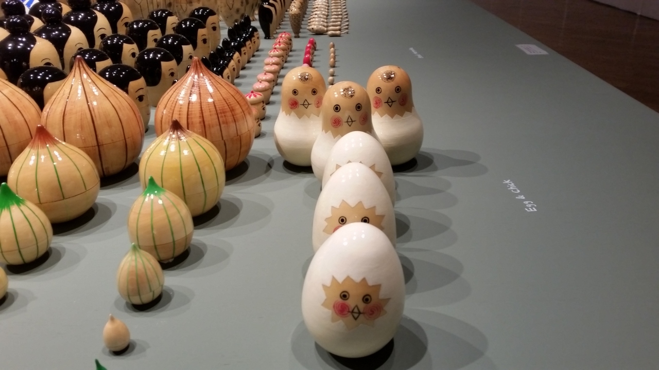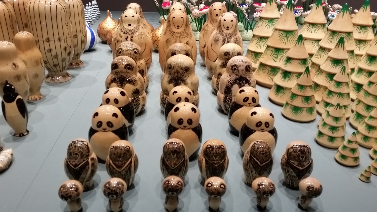 新聞に載っていたと友達が教えてくれたので、イムズの8階に行きました。入場料は400円ですが、会期中は何回でも入れます。1フロアの狭い会場です。木製のかわいいこけし風の物、マトリョーシカなどが沢山並んでいました。