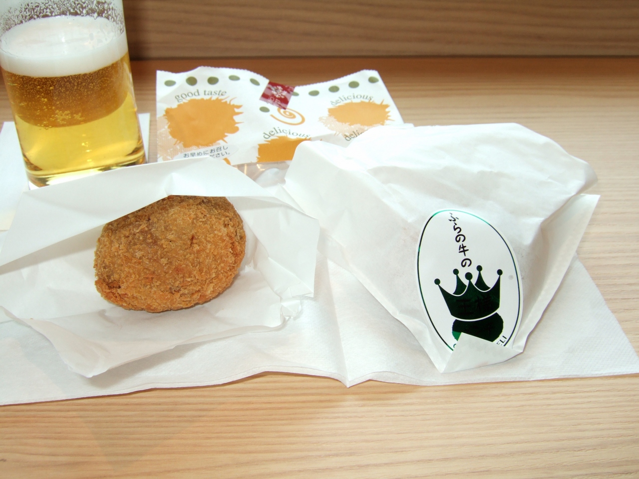 メンチはの肉はかなり粗挽きでとても食べごたえがありますが、富良野牛は赤身に近いのか肉の味がしっかりしており、白老牛は柔らかくてジューシー。違いが楽しめました。