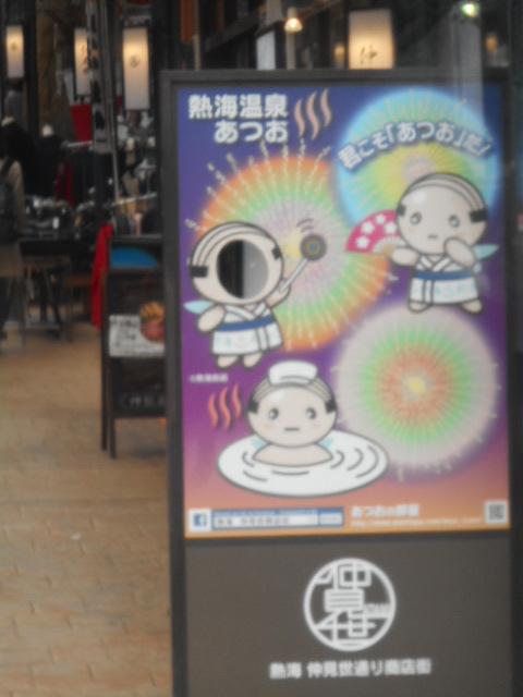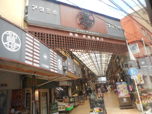 熱海の駅からすぐの場所にある商店街の一つです。アクセスはとてもいいです。すこしさ赤になっています。いろいろなお土産屋さんや干物屋さんなどが軒を連ねていて熱海らしい買い物ができます。飲食店もあって、駅から見えるマックとかも仲見世商店街の一部みたい。熱海のキャラの顔出しもありました。