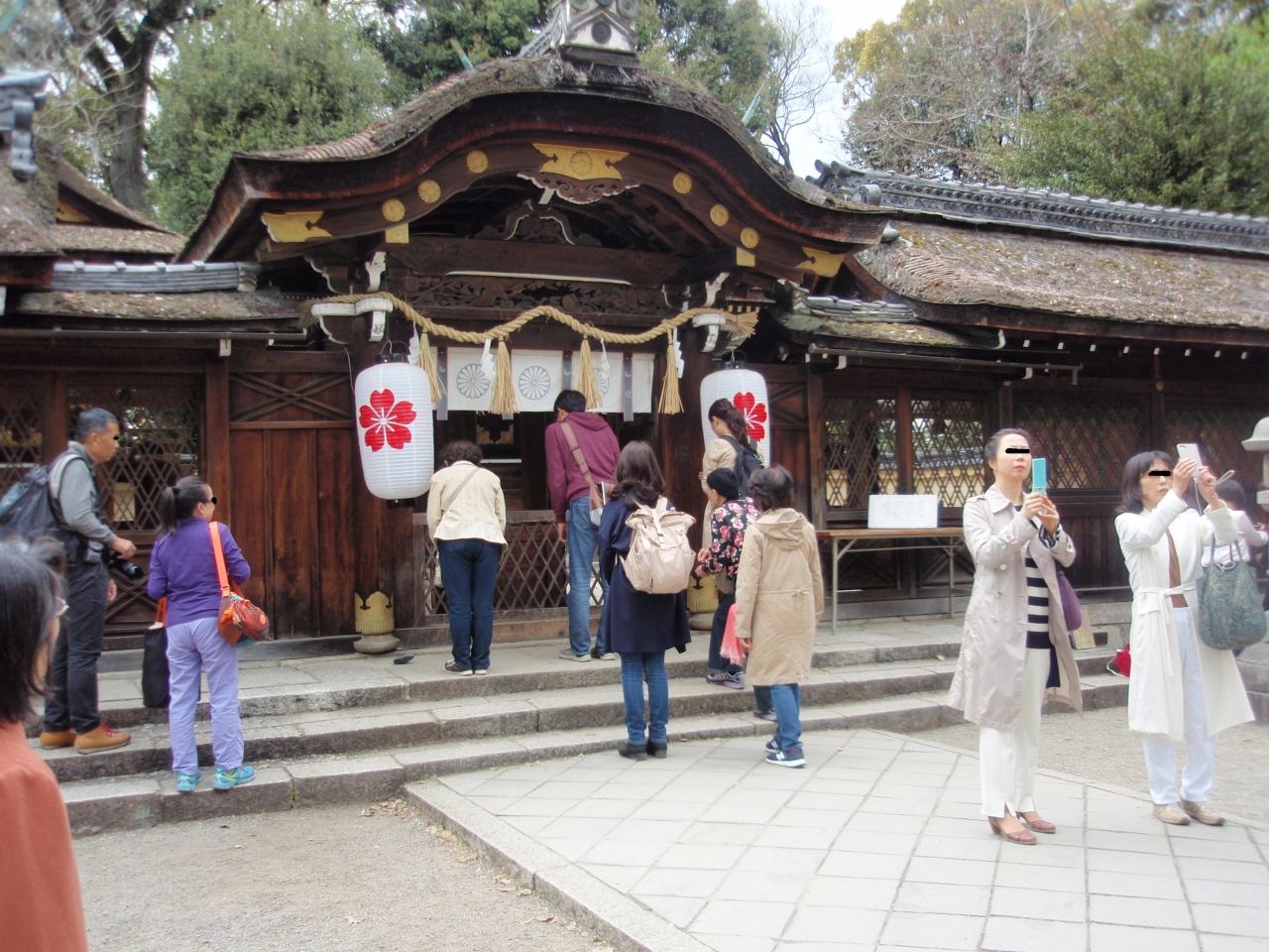 平野神社の主祭神は今木皇大神で、創建は八世紀末です。文化財は国重文本殿、京都府指定拝殿、南門等を有します。ソメイヨシノは終了していますが、50種400本の珍しい桜を見に行きました。鳥居をくぐると見事なしだれ桜が迎えてくれます。松月、嵐山等桜が見られます。神門を潜り正面に神楽殿、その向こうに拝殿、奥に本殿があります。境内左右に、佐野庭園で見られなかった、楊貴妃、おけさ、一葉、朱雀、突羽根桜、平野妹背、御車返し、大内山、衣笠、十月桜、関山、白雪桜等、また佐野庭園でみられた、御衣黄、ウコン、胡蝶、有明等、ここでも多くの珍しい桜を見ることができました。満足できる花見でした。御神木大クスの前に日本最大といわれる「すえひろがね」があります。「すえひろうがね」は磁石をひきつける石で、磁石入りのお守りをこの石に付け、霊石のパワーを貰ってご利益を授かるようです。さすが中心街の神社で人は多いです
