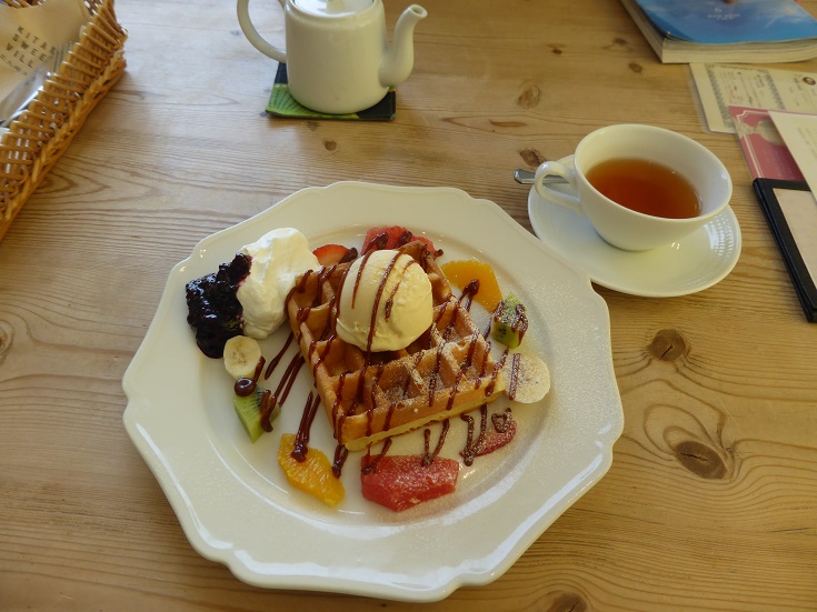 フルーツワッフルの一段740円と紅茶をセットして合計990円でした。
