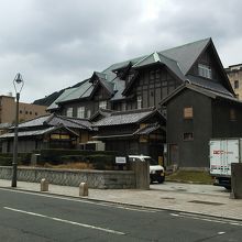 旧大阪商船の煉瓦の建物の隣なので少し小さく見えてしまいますが^^;大正10年に建てられたという木造建築の洋館です。