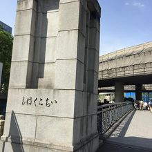 東京駅から外堀通りをしばらく歩くと、日本橋川に架かる一石橋にたどり着けきます。今では鉄筋コンクリートの頑丈な橋ですが、当初は木柱だったそうです。もっとも今のように車がバンバン走るといったこともありませんが。ここの特徴は四基の親柱。立派な石造りで、中央区民文化財にもなっているそうです。橋の脇に案内板があって、親柱の詳細が書かれています。