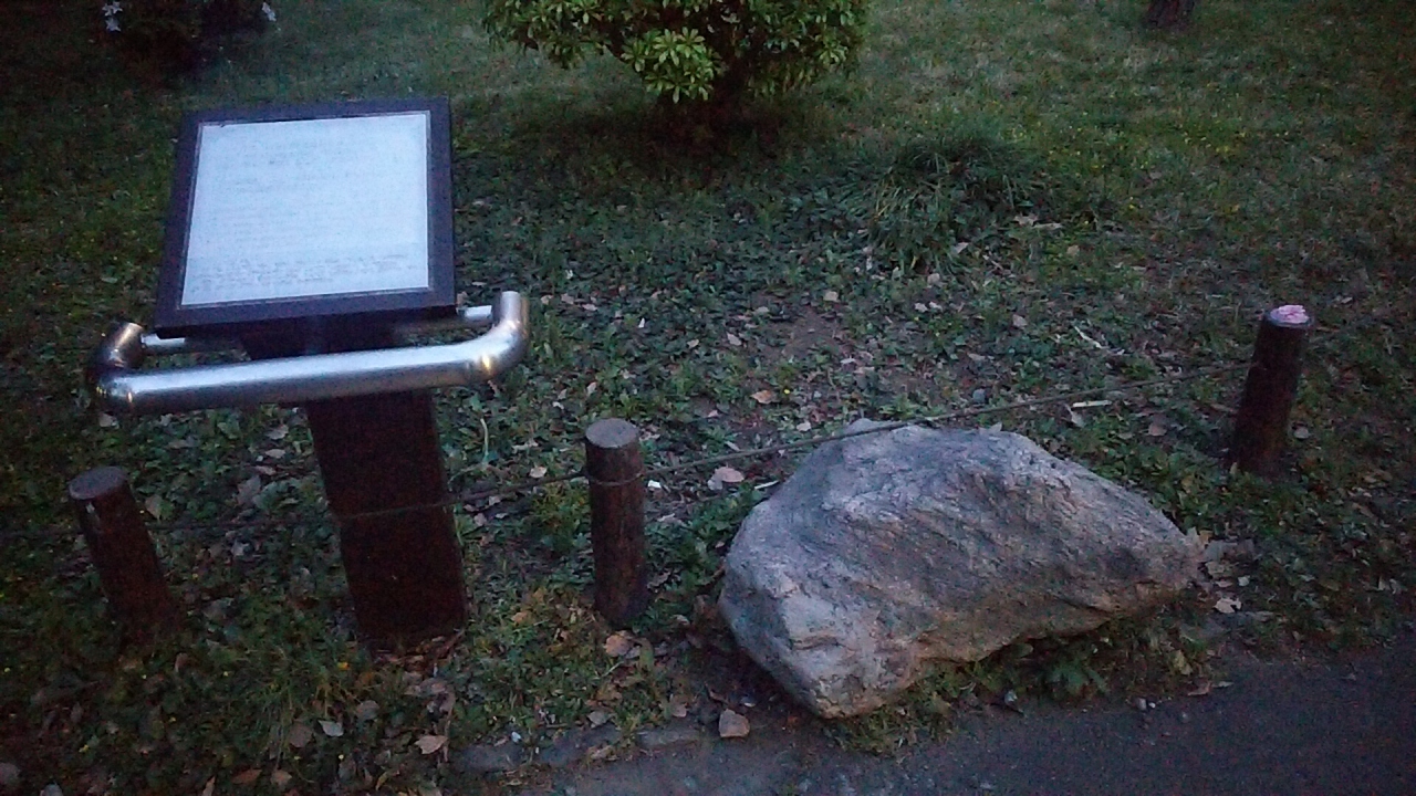 日比谷公園有楽町から近い入口から入り、心字池に沿ったあたりにある石です。