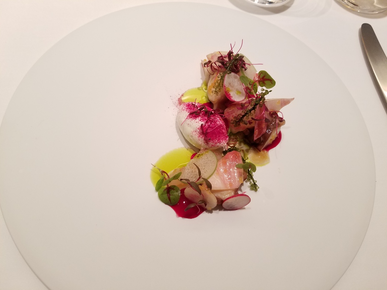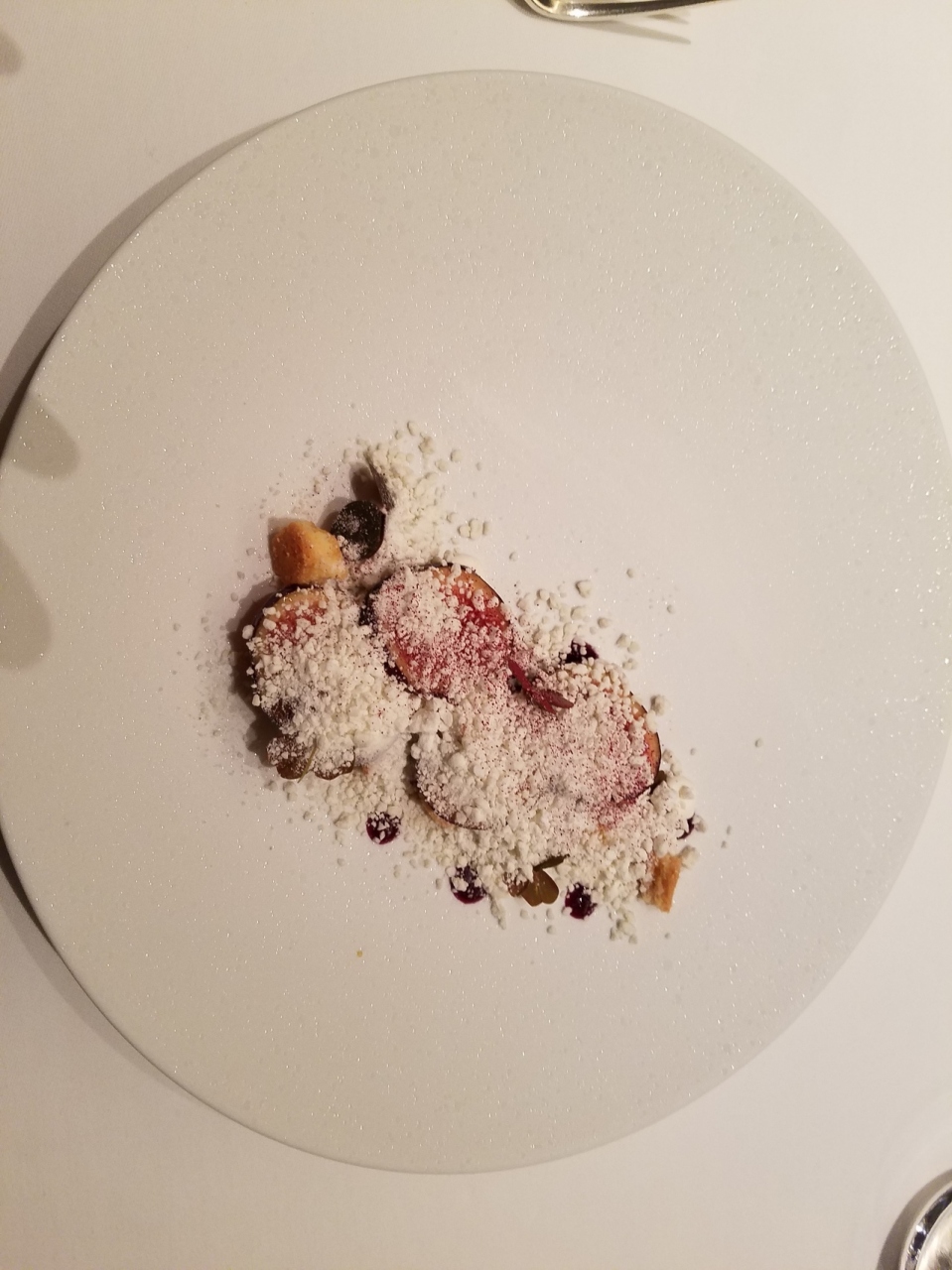 このレストランは肉が一切出てこない魚だけのコース料理です。魚だけでも飽きさせず、見た目も美しく盛られ、数種類の料理を楽しめます。味付けもおいしく、凝った料理が出てくるので、一皿一皿驚かされます。一番おいしかったのは、スープドポワソンという7種類の魚とオマール海老のスープで、味が凝縮され濃厚でおいしかったです。