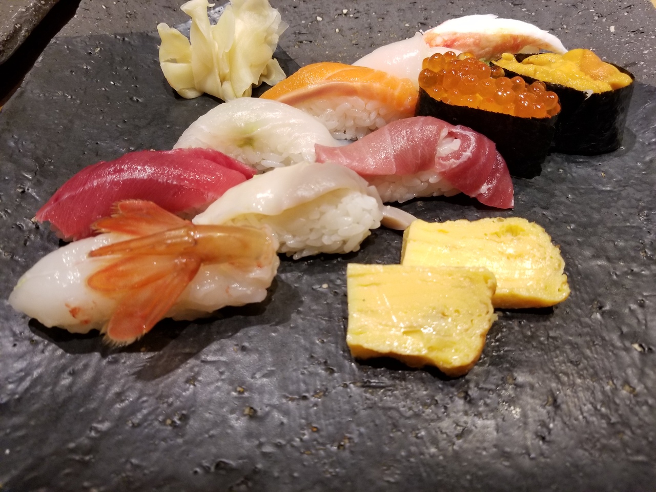 週末の夜に友達と行きました。同じフロアーの店は混んでいたので、すぐに入店できたこちらに入りました。さっと食べてさっと帰りたかったので、握りの盛り合わせを注文しました。ゆったりお酒を飲んでお寿司を食べられる雰囲気のお店だと思いました。